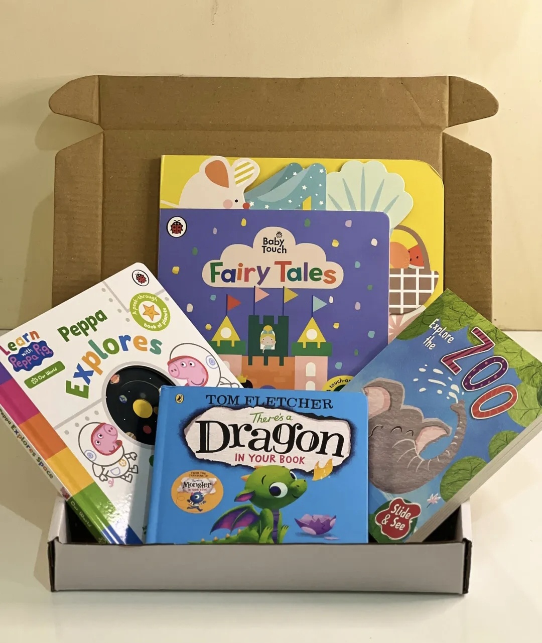 An engaging book box with 4 books thoughtfully curated for babies aged 0-3 years